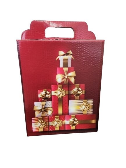 Cutie din carton pentru cadouri, deisgn Crăciun. Caracteristici: Dimensiuni: 260x140x330 mm Print design Crăciun Culoare: Roșie